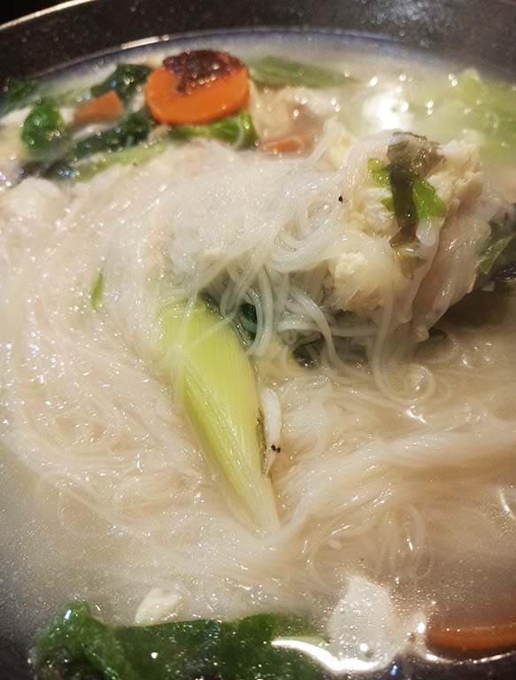 老酒麵線酒香味超濃厚,要吃的時候要把底層的酒攪拌均勻,新鮮的蔬菜配料樸實卻也提昇了整個老酒麵線的鮮甜味,麵線滿滿滿,用的是福州細麵線,順口有韌性不是糊糊的那種。老酒是私釀的,酒香氣足,天氣冷最適合喝上一碗,光喝了兩三口身體就開始熱了起來。