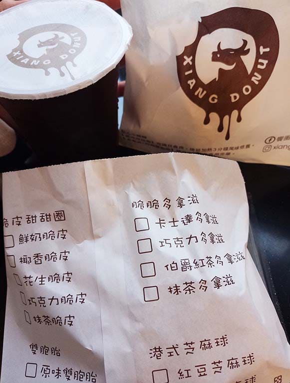 因為這裡只有外帶沒有內用座位,買完可以邊吃邊逛中平商圈,紙袋上面有貼心小提醒,有包餡的多拿滋和雙胞胎要在兩小時內吃掉,脆皮甜甜圈可以放至隔日用烤箱加熱。