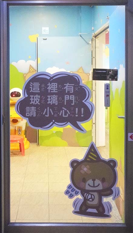 從一樓走上來,到處都可以看到可愛的熊熊在牆壁上,不只是森林裡有熊親子樂活堡,連樓梯間都有熊呢!門口還很貼心的放上曬衣桿和傘架,如果下雨的話可以把雨具掛在這。因為是舊式的大樓,所以沒有電梯,如果有推推車的家長可以在一樓按服務鈴會有人來幫忙,又加上是位在市場巷子裡,停車場距離較遠,除了這兩點較不方便之外,其餘的部分都非常優。