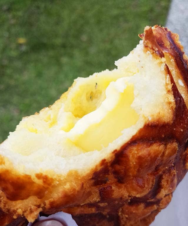 冰火菠蘿因為外層是熱的一定要買完趕快吃,冷掉後就不會有冰火的雙重感受,裡層夾的有鹽奶油讓整體麵包甜鹹中和,不會膩而且奶油香味重,外層油亮酥脆,不只美觀吃起來也超合我胃口。