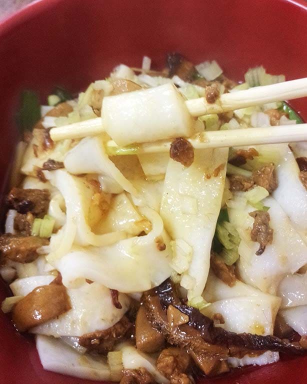 點了乾粄條、魷魚羹、骨仔肉、肉燥乾麵和小碗的魯肉飯兩個人一起吃,因為中午沒吃餓有點久。乾粄條配上香菇滷肉滷汁和芹菜超順口,一口接一口三兩下就被吃完了。
