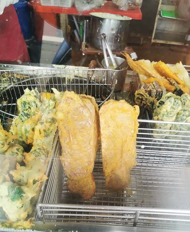 每項炸物裹上麵衣後下去油炸,特別的是這家的芋頭和地瓜都是切整片下去炸,炸完後才切成方便食用的小條狀。炸至金黃酥脆的外皮真的非常吸引人想要吃吃吃,就連之前在減肥也敵不過這誘惑。