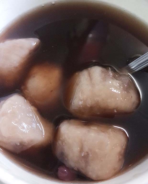 正因為他的芋圓和地瓜圓口感不是Q彈有嚼勁,超適合給小朋友和牙齒不好的老人家吃,擔心小小孩吃芋圓會像吃珍珠那樣不小心噎到的話,粗芋圓的手工芋圓、地瓜圓完全就是福音啊。這碗純芋圓口味的紅豆湯芋圓一下就被家裡的小朋友嗑光光,紅豆湯又不會太甜。